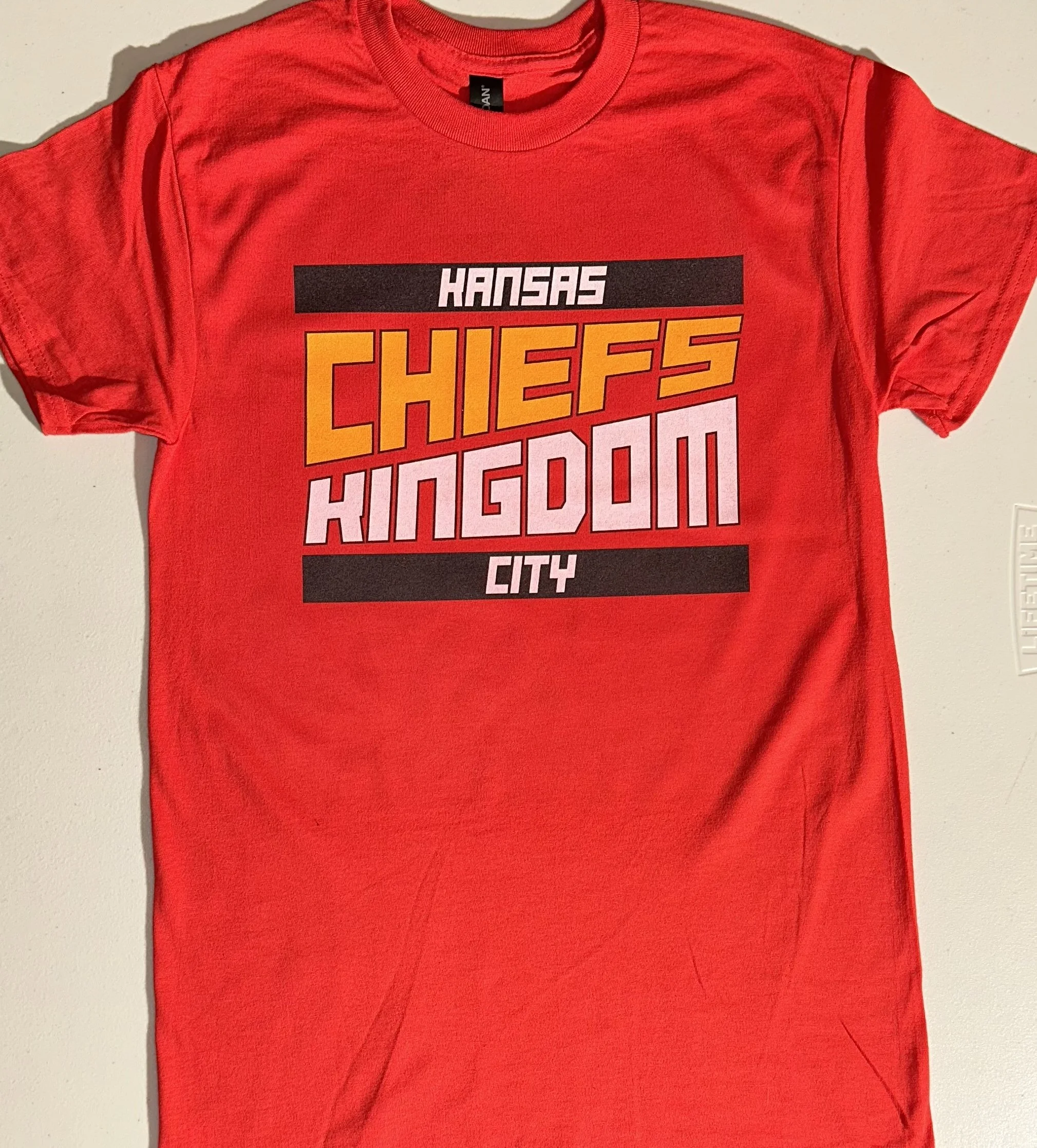 Available on red Gildan T-shirts in Youth and Adult sizes.